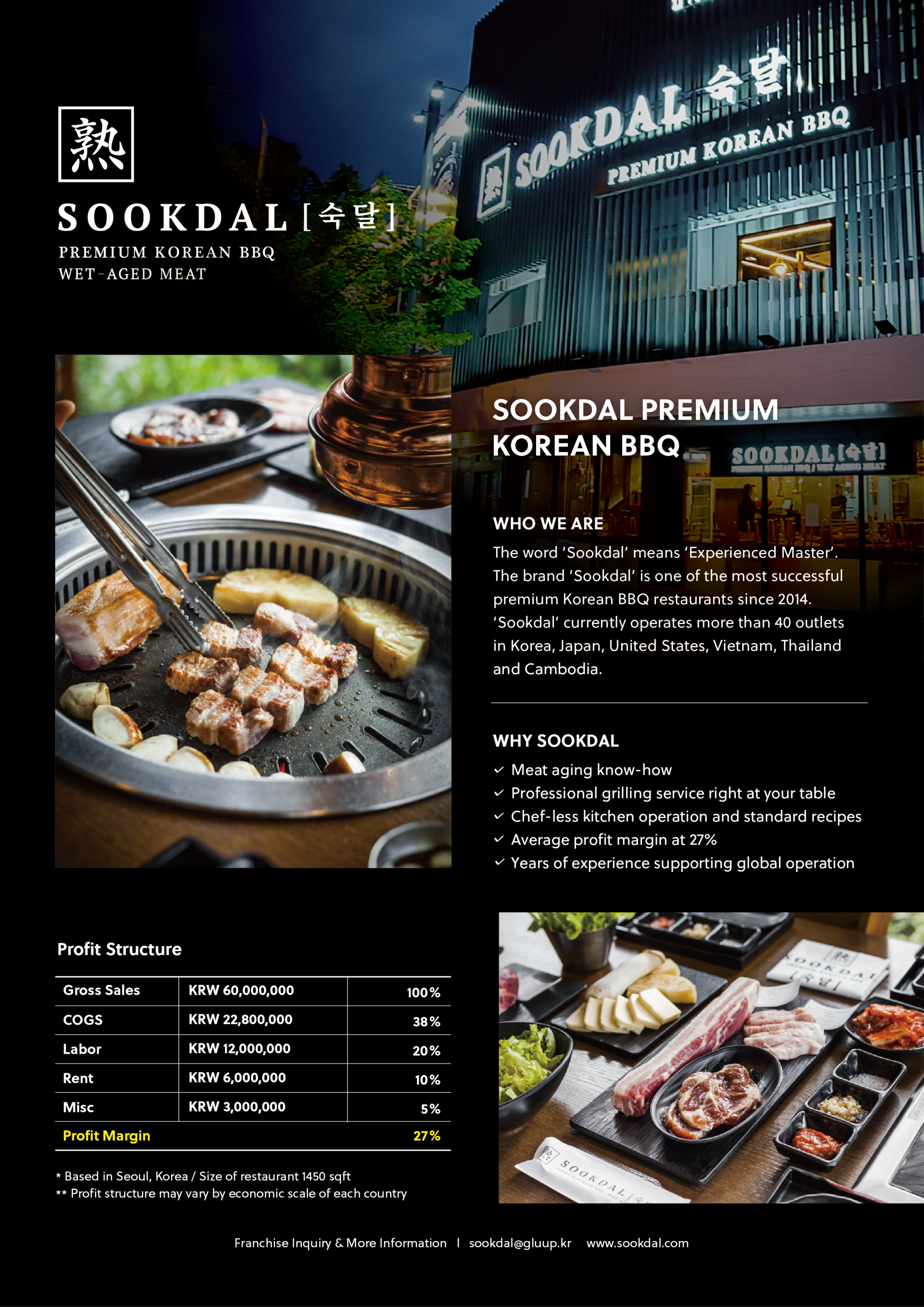 Sookdal is one of the most successful premium Korean barbecue restaurant establishments across the world started in Seoul, Korea since 2014.
